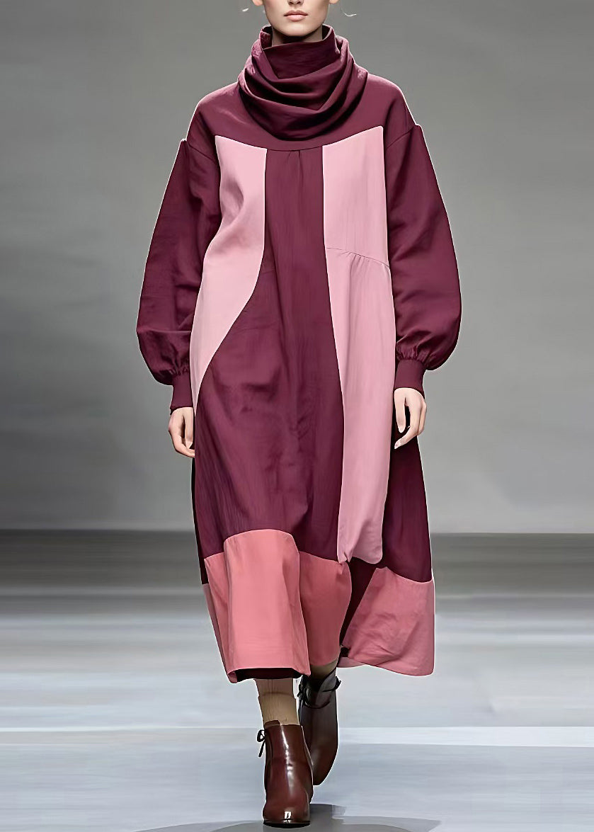 Art Multicolor Turtle Neck Long Dresses Long Sleeve