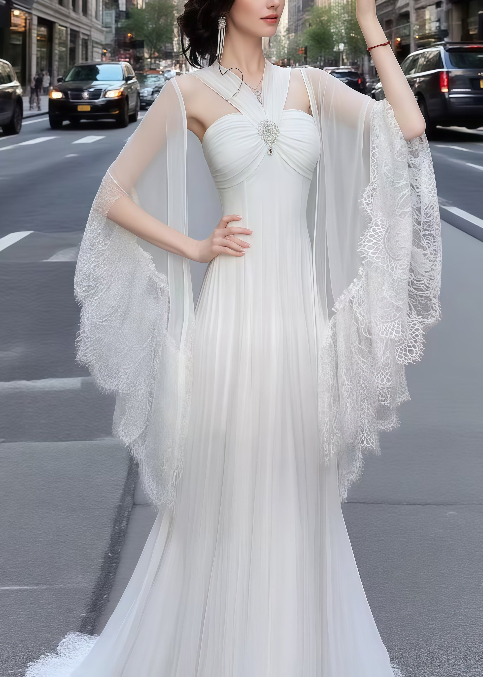 Beautiful White Silm Fit With Shawl Tulle Vestidos Dresses Summer