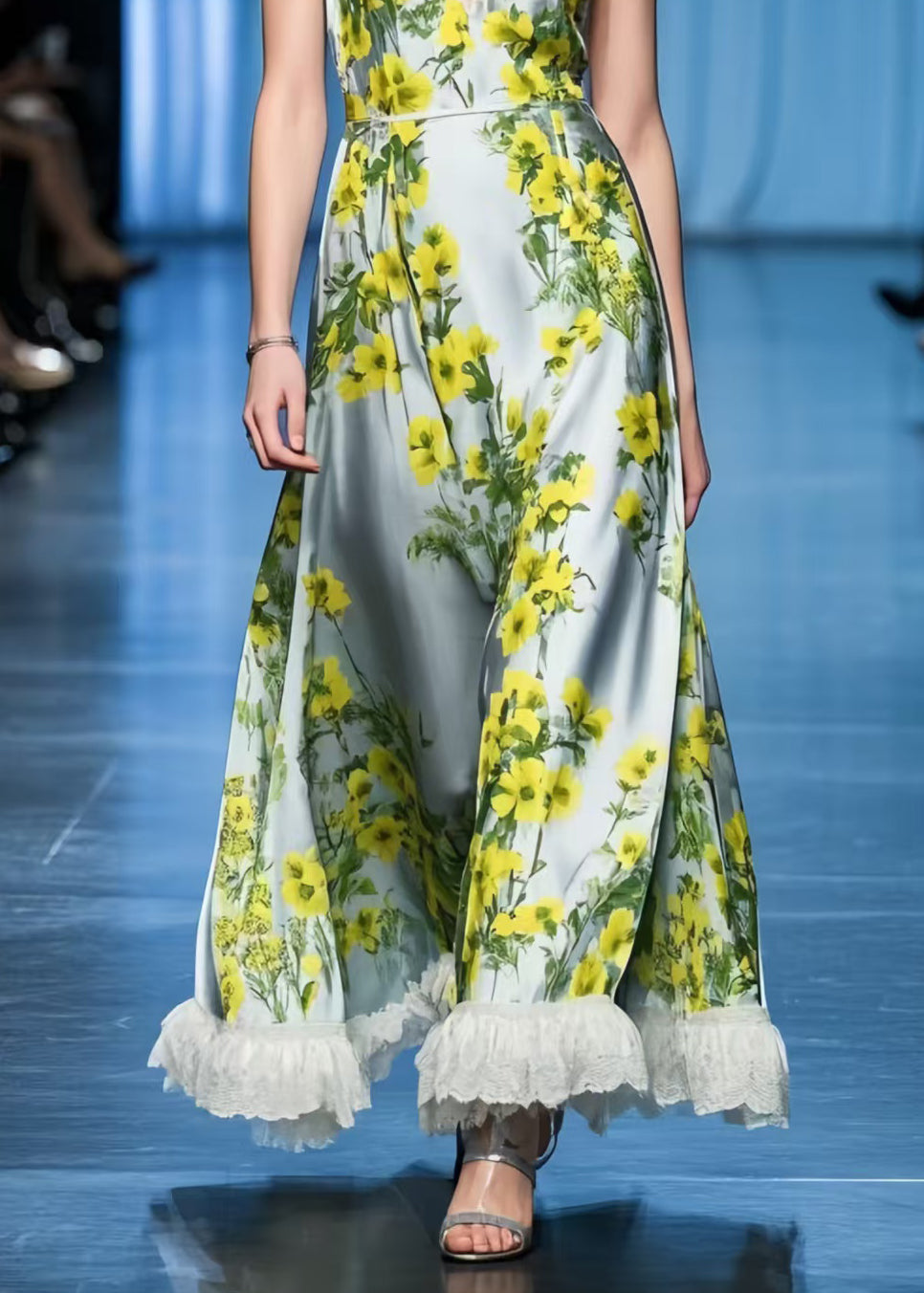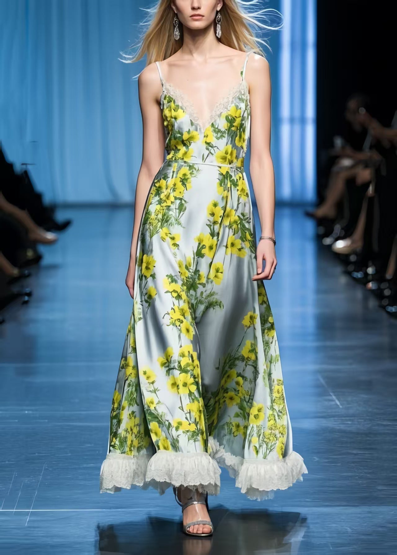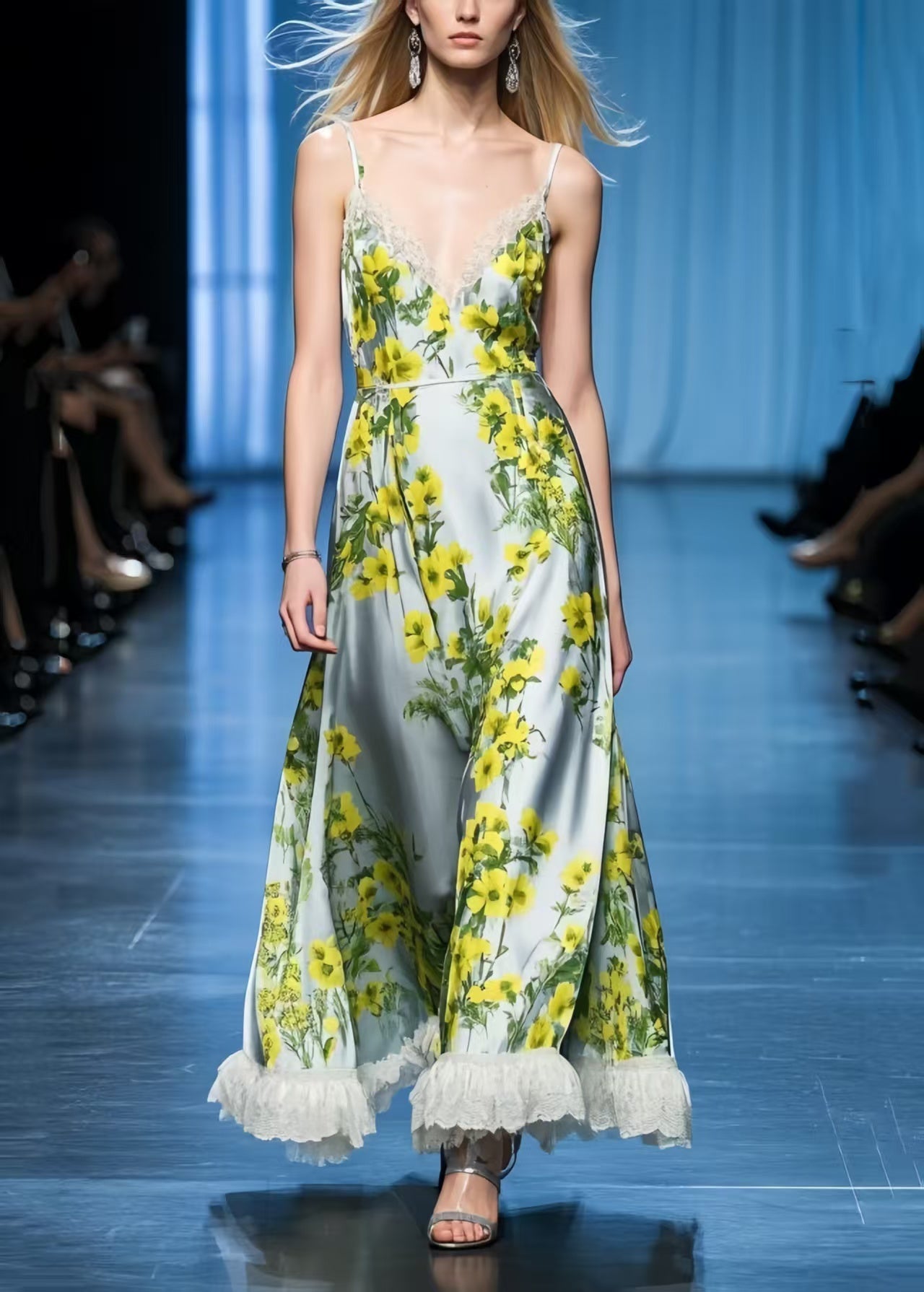 Beautiful Yellow Floral Patchwork Lace Spaghetti Strap Sundress Summer
