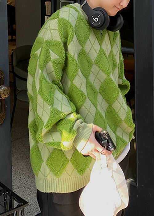 Blue Plaid Loose Knit Men Sweaters O Neck Fal