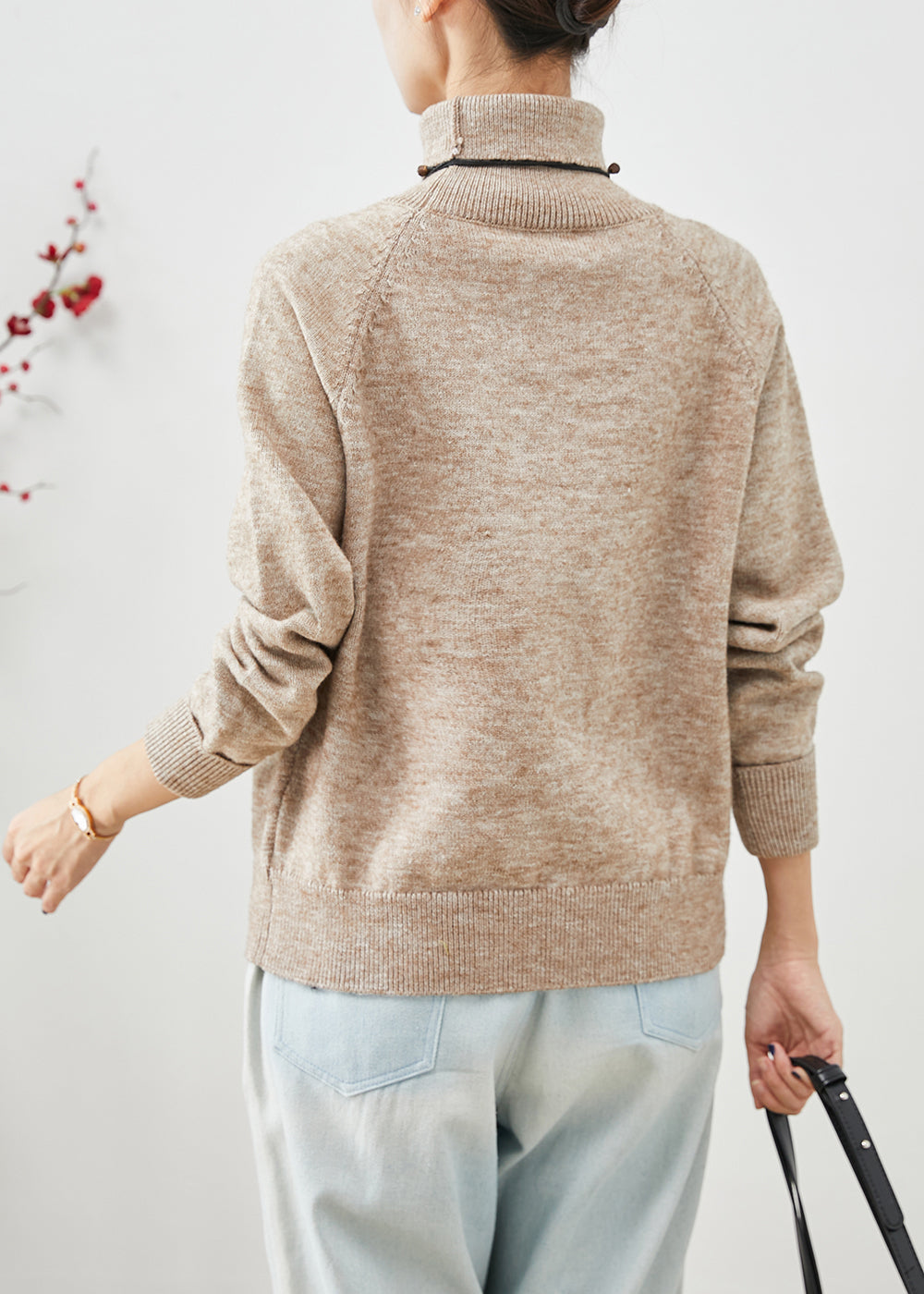 Bohemian Khaki Turtle Neck Silm Fit Knit Short Sweater Winter
