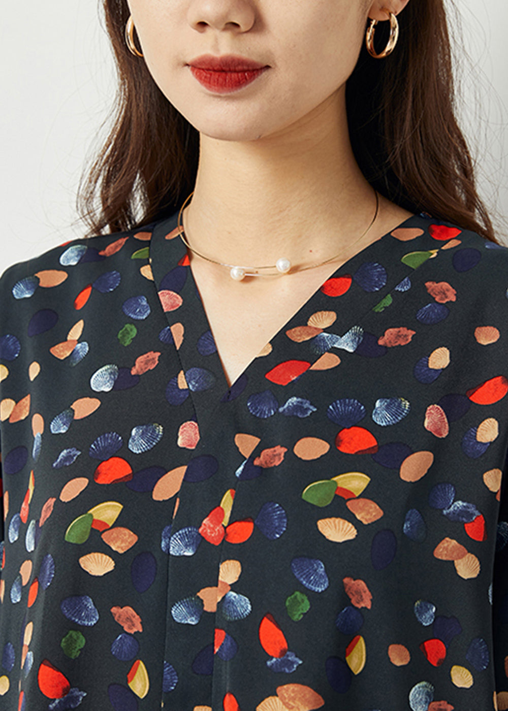 Boho Black V Neck Asymmetrical Design Print Chiffon Two Pieces Set Spring
