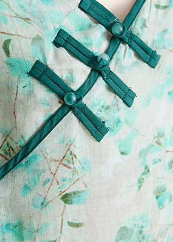 Boho V Neck Print Button Side Open Holiday Dress Three Quarter Sleeve
