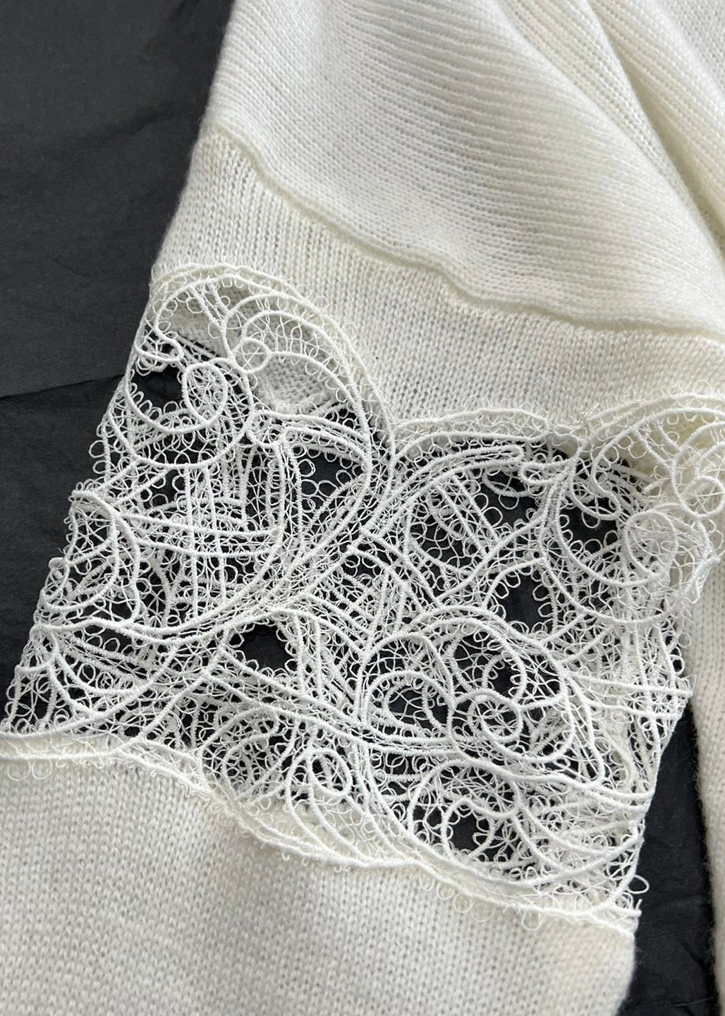 Boutique Beige Cold Shoulder Lace Patchwork Woolen Knit Sweaters Spring