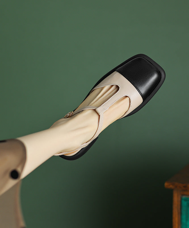 Boutique Faux Leather Buckle Strap Splicing Beige Sandals