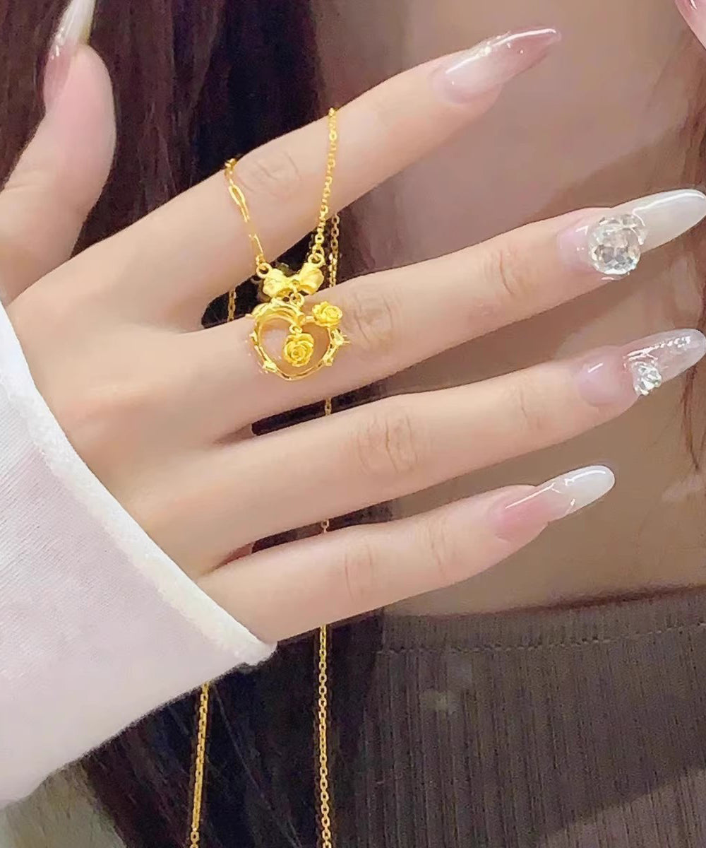 Boutique Gold Sterling Silver Overgild Bow Love Rose Pendant Necklace