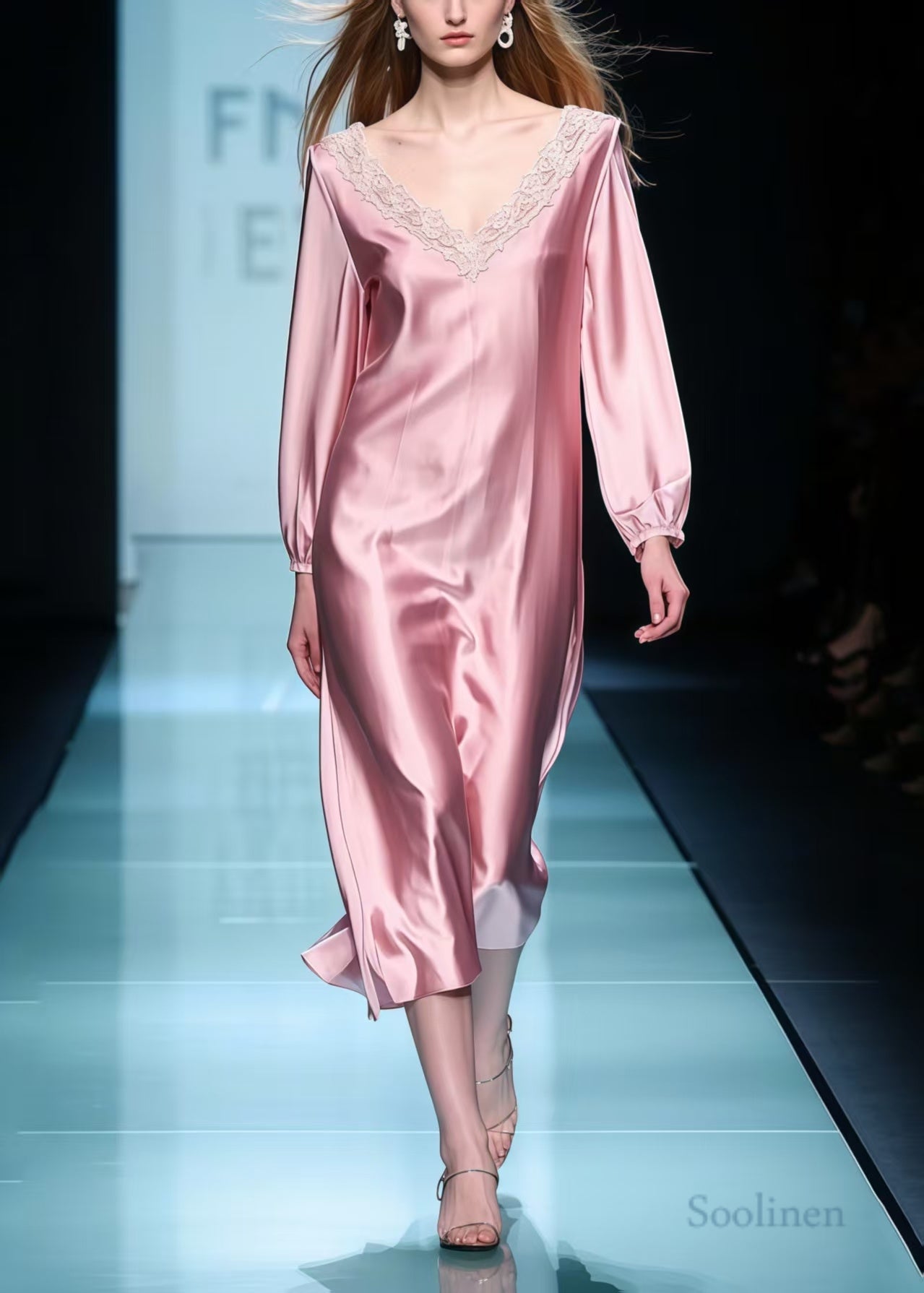 Boutique Pink V Neck Patchwork Lace Holiday Dress Spring