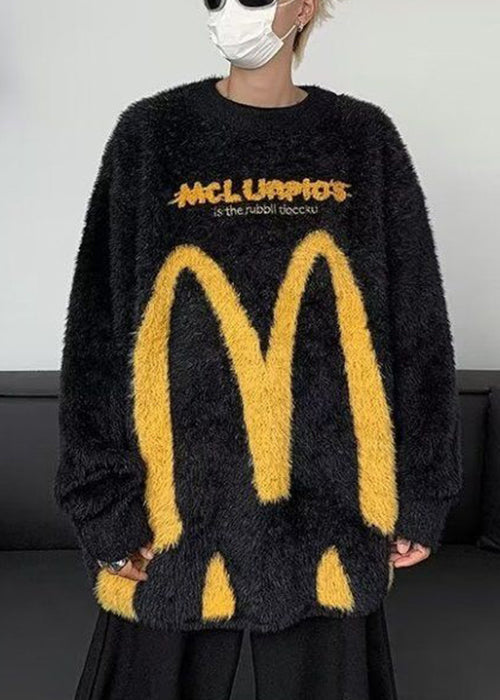 Casual Beige Letter Knit Men Sweater Pullover O Neck Winter