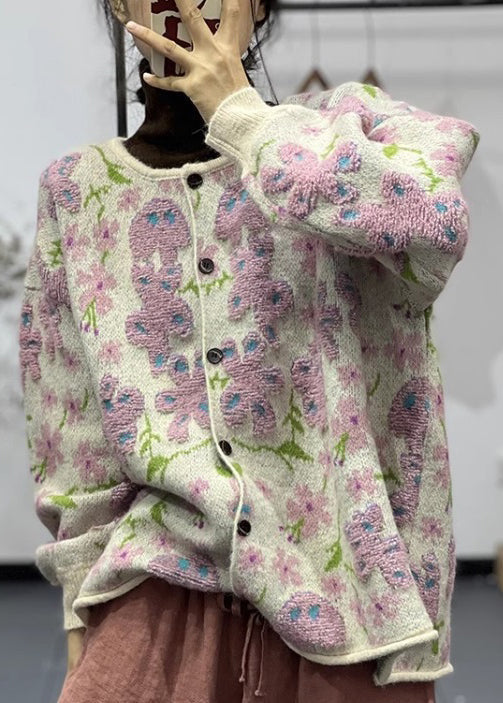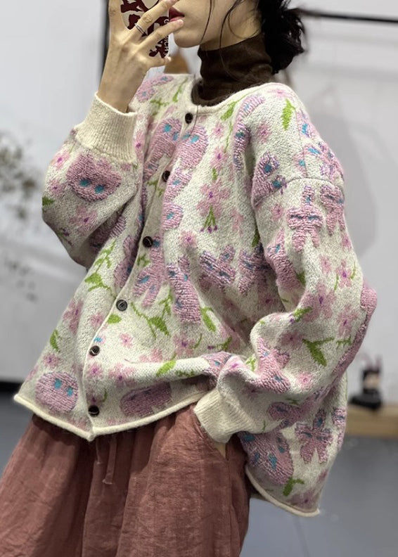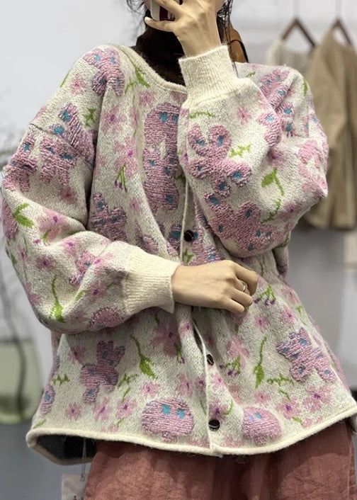 Casual Versatile Plus Size Jacquard Button Thick Knit Sweater Autumn