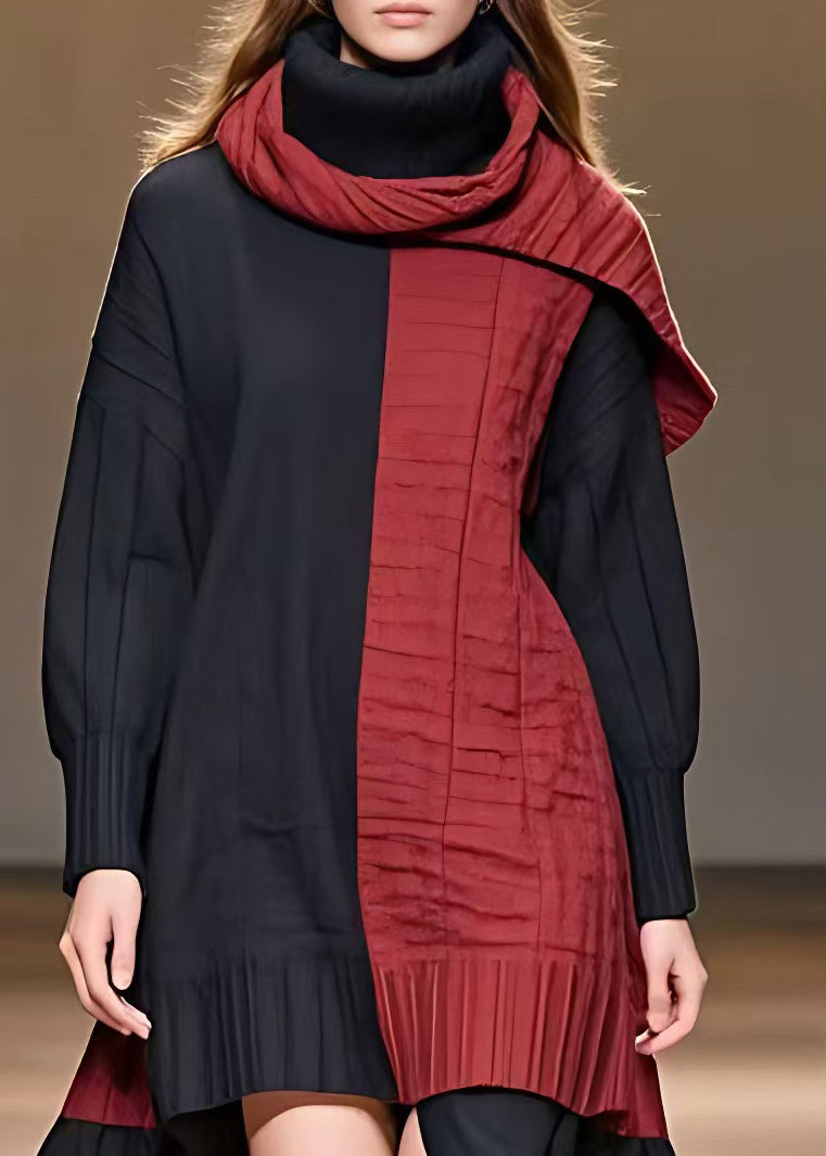 Chic Black Patchwork Red Low High Design Maxi Dresses Fall