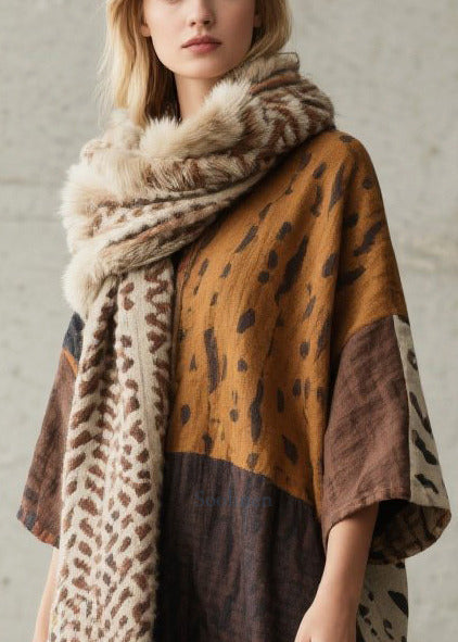 Chic Colorblock Oversized Print Cotton Dress Bracelet Sleeve