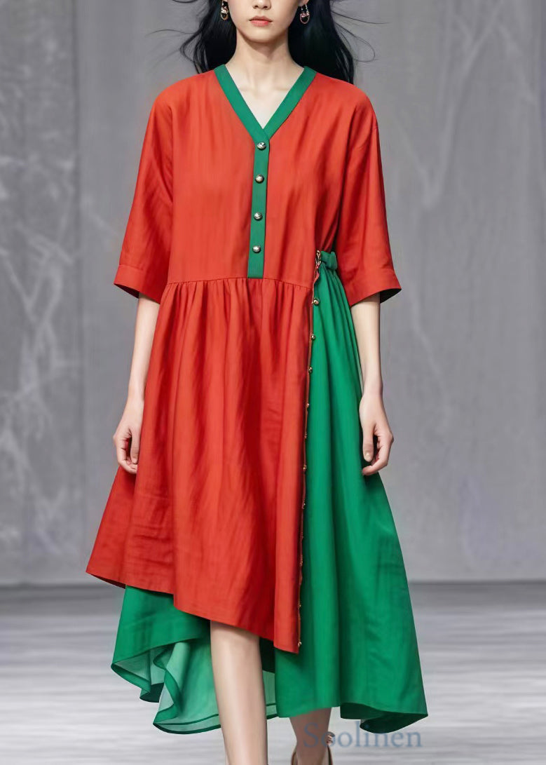 Chic Red Asymmetrical Patchwork Cotton Dresses Summer
