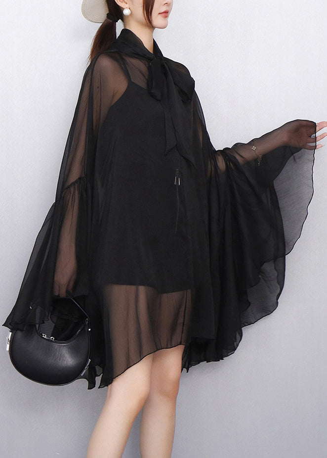 Classic Style Bold Floral Print Bow Chiffon Two Pieces Set Dress Fall