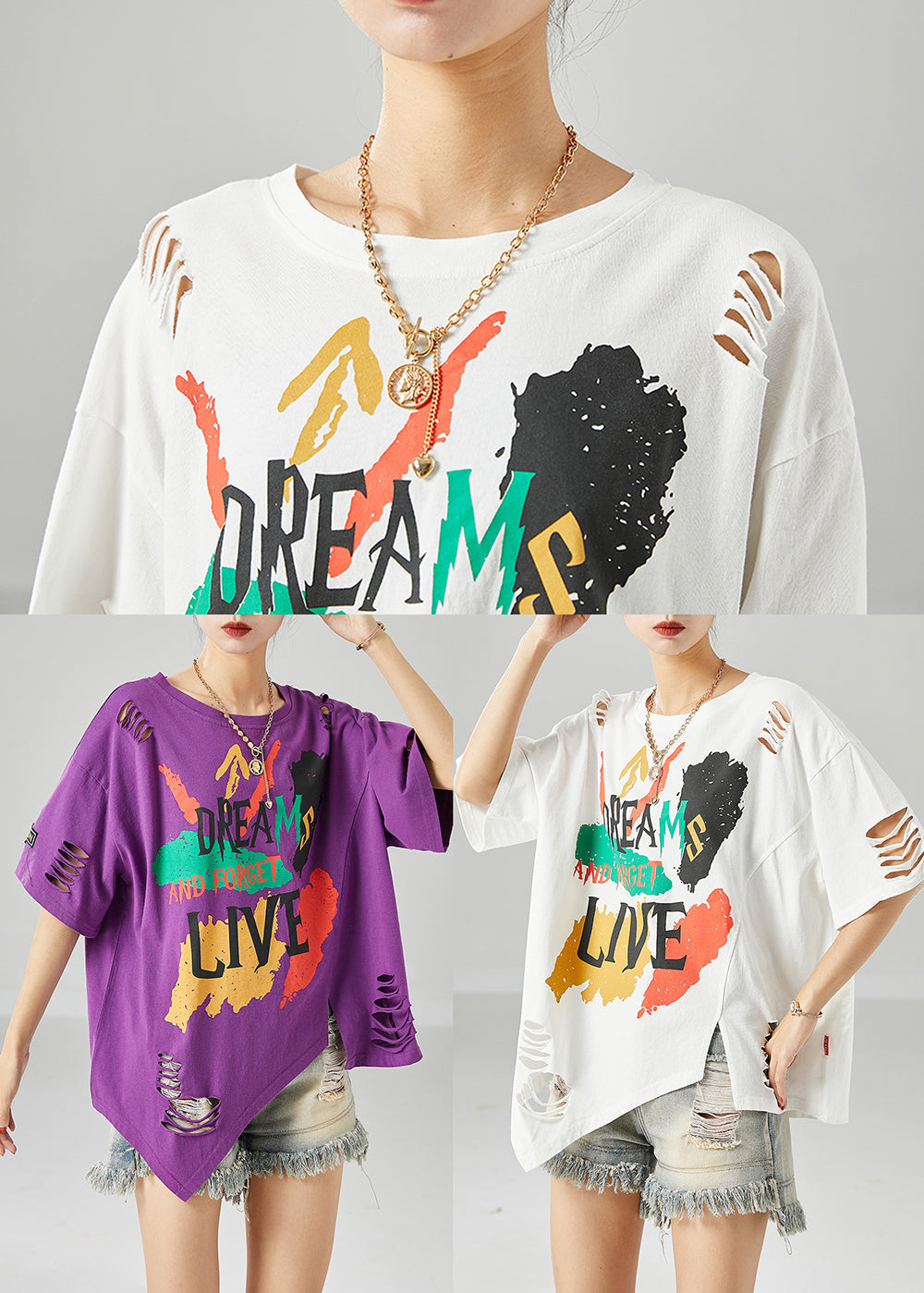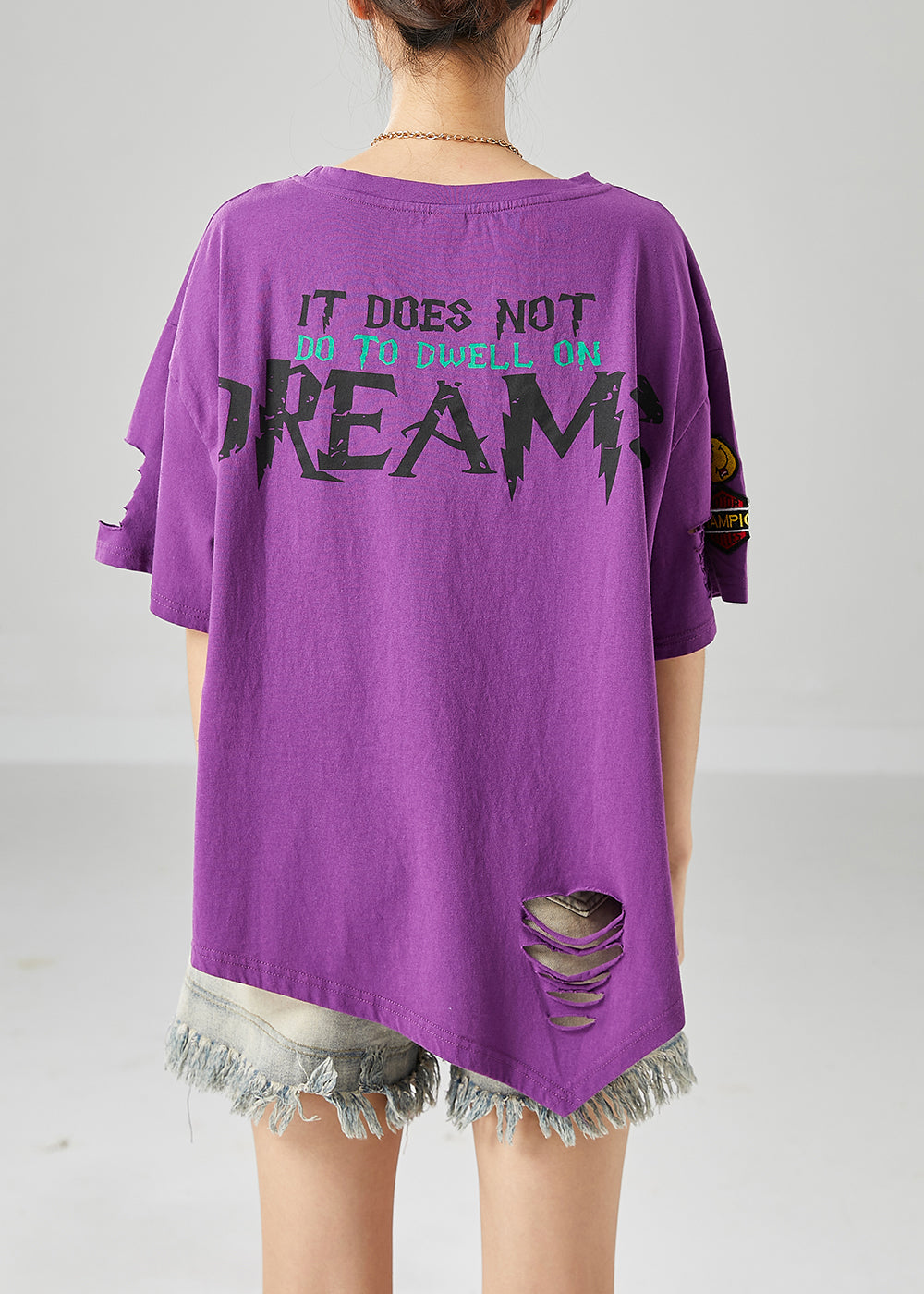 DIY Purple Asymmetrical Print Cotton Tank Tops Summer