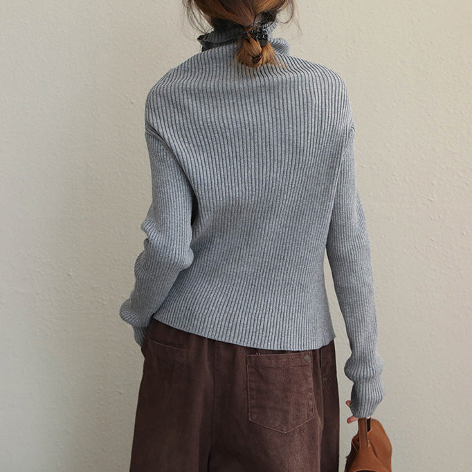 Elegant High Neck Button Down Fashion Fitted Sweater Women Casual Tops