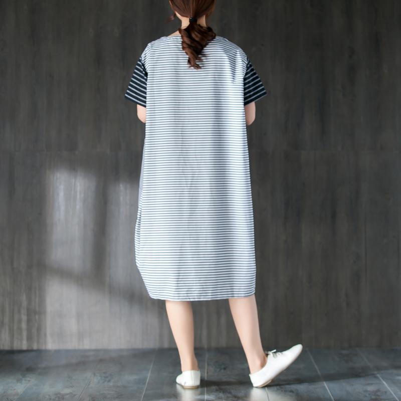 Elegant pure cotton dresses oversized Large Pockets Stripe Cotton Thin Summer Women Dress