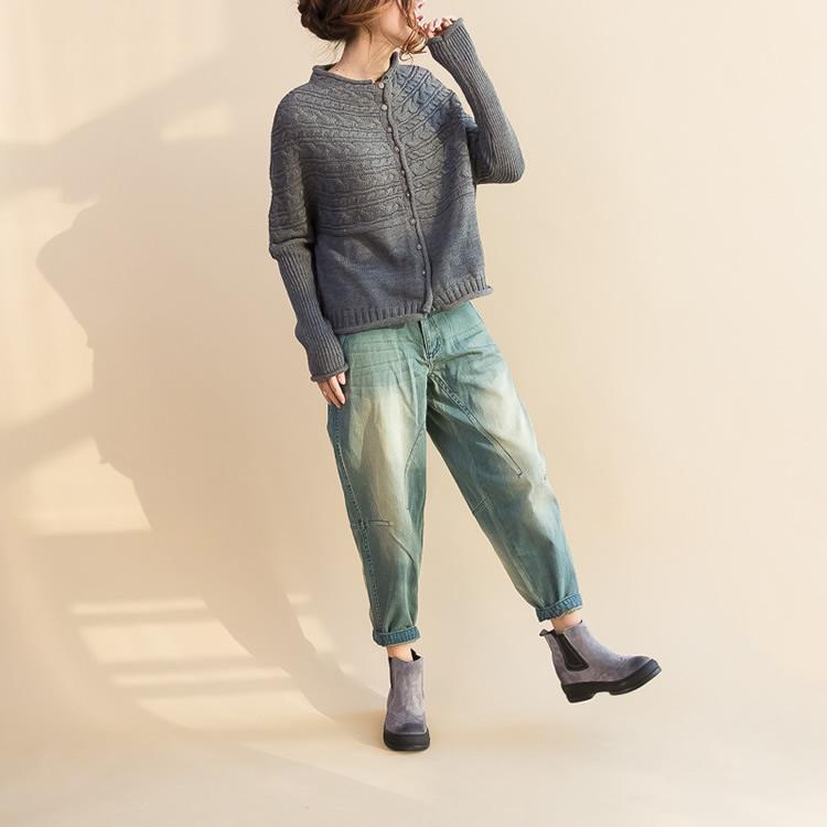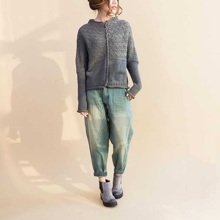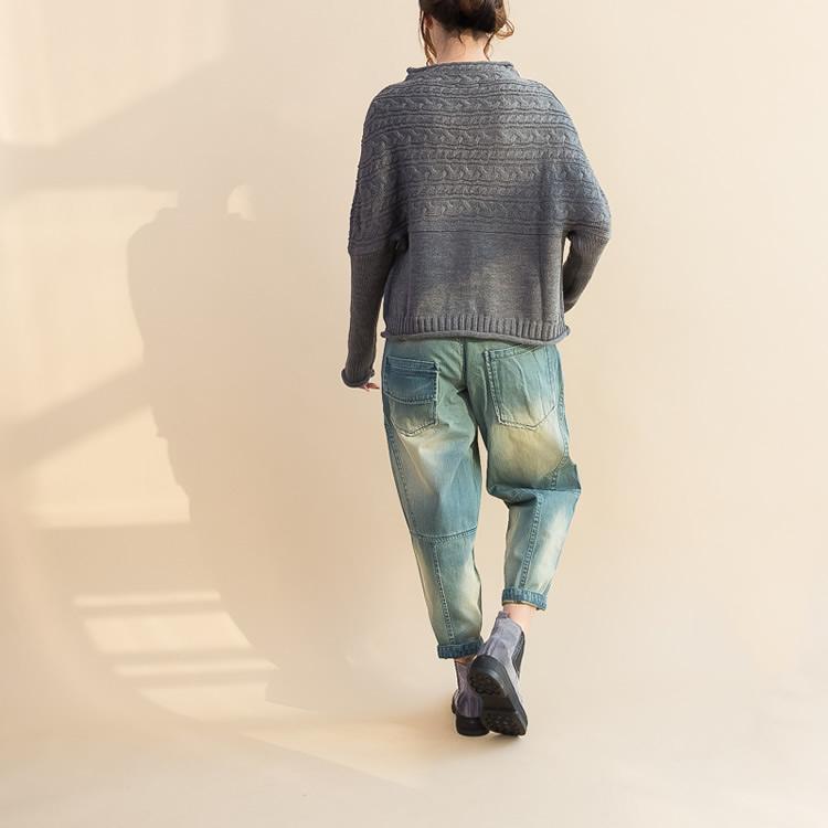 fashion gray cotton knit tops plus size warm long sleeve sweater