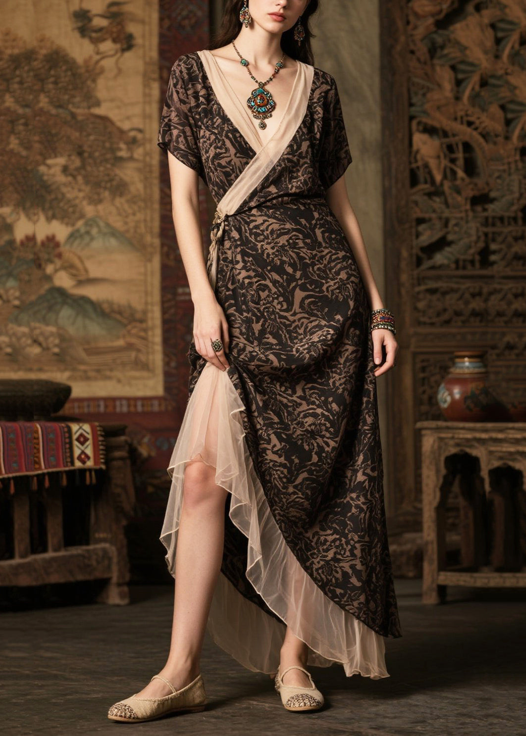 Fine Black Print Patchwork Chiffon Long Dresses Summer