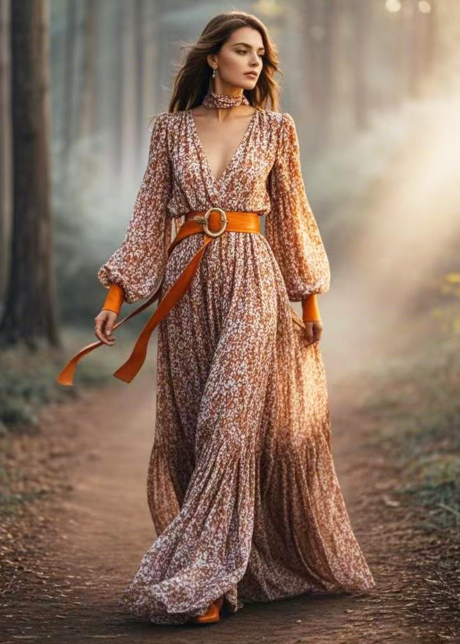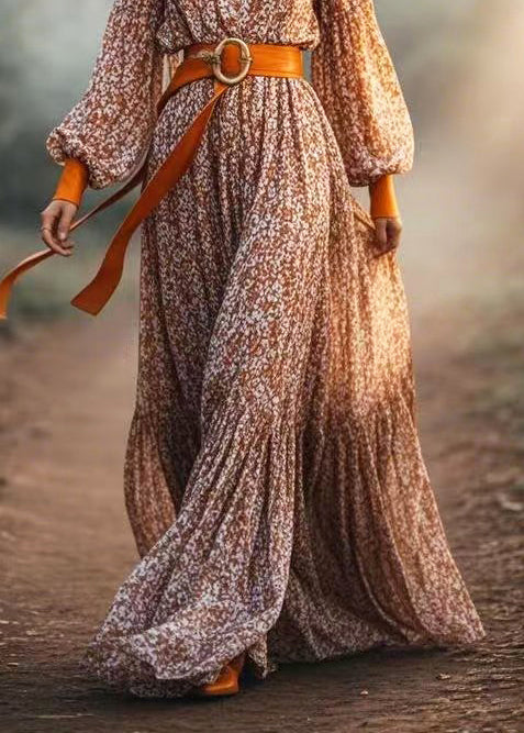 Fine Khaki Cinched Print Cotton Vacation Dress Spring