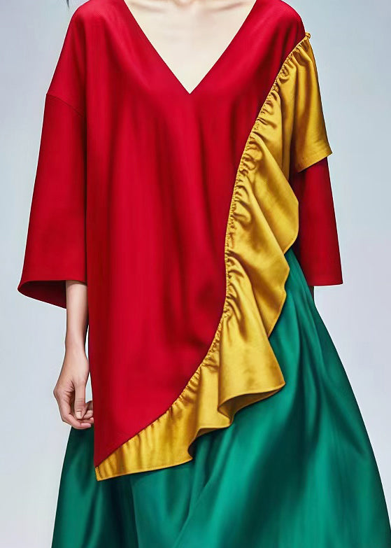Fine Red Asymmetrical Ruffles Cotton Dress Summer