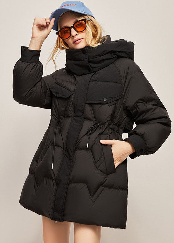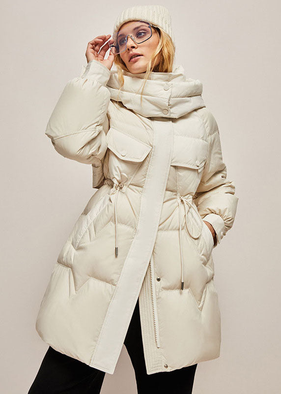 Fine White Hooded Drawstring Warm Duck Down Down Coat Winter