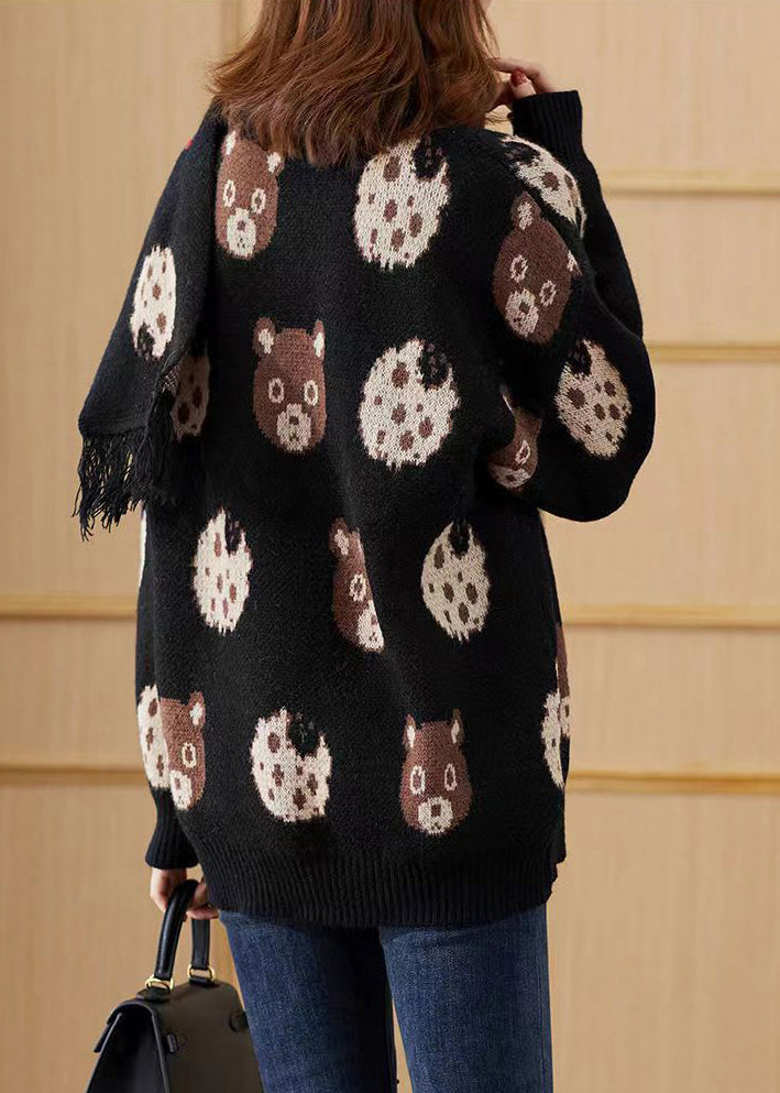 Fitted Black Print Free Scarf Knit Pullover Winter