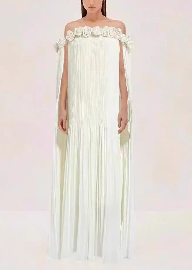 Floral Red Slash Neck Wrinkled Cotton Maxi Dresses Summer