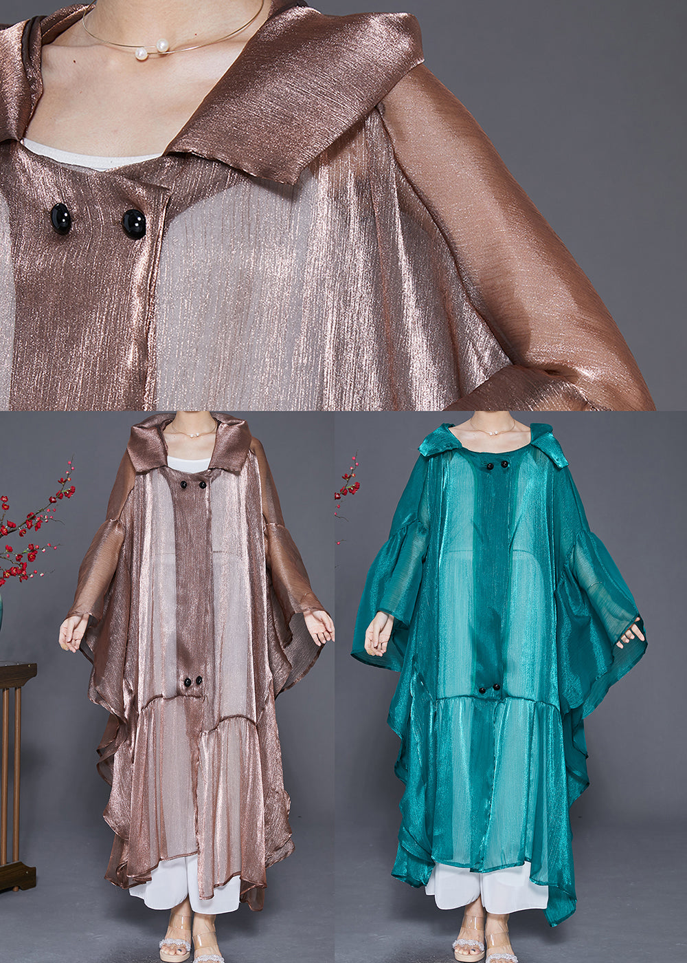 Fluorescent Green Loose Silk UPF 50+ Cardigans Hooded Batwing Sleeve