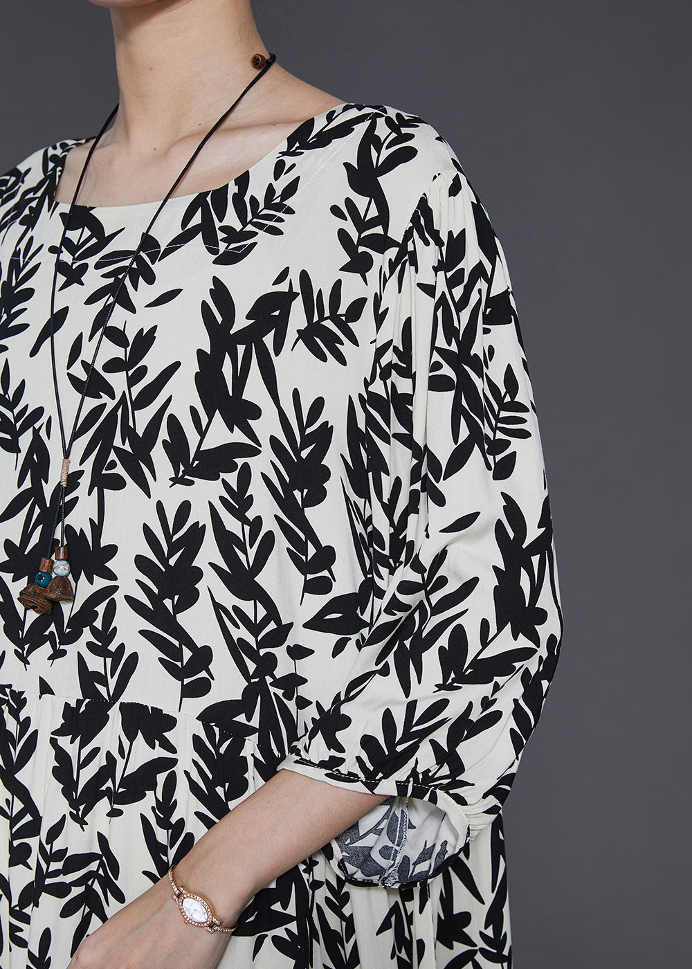 French Black Print Cotton Holiday Dress Summer