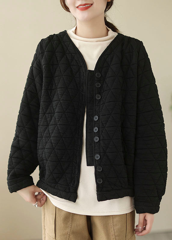 French Khaki Solid Color Fine Cotton Filled Jackets Winter