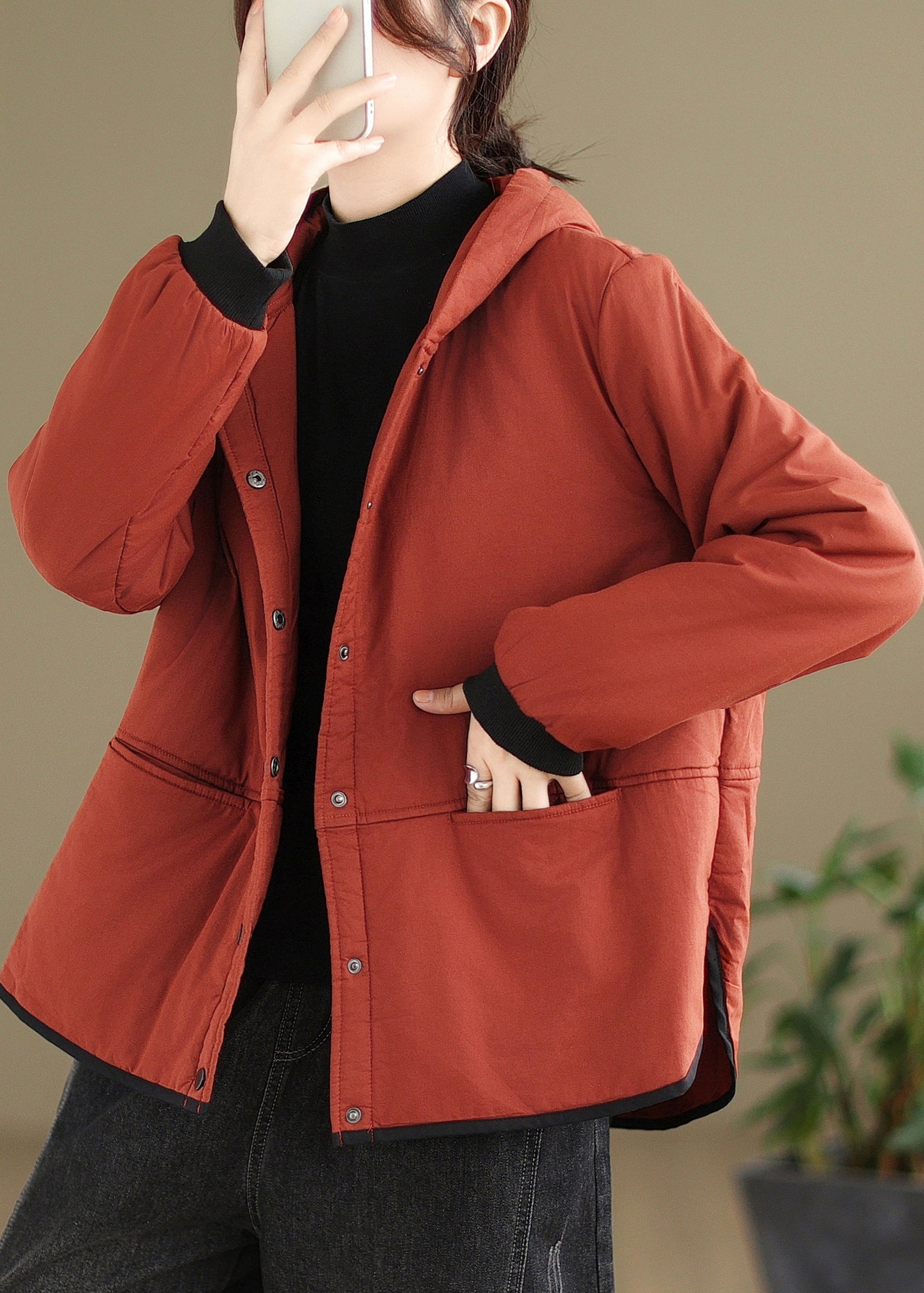 French Orange Hooded Pockets Cotton Filled Parka Winter