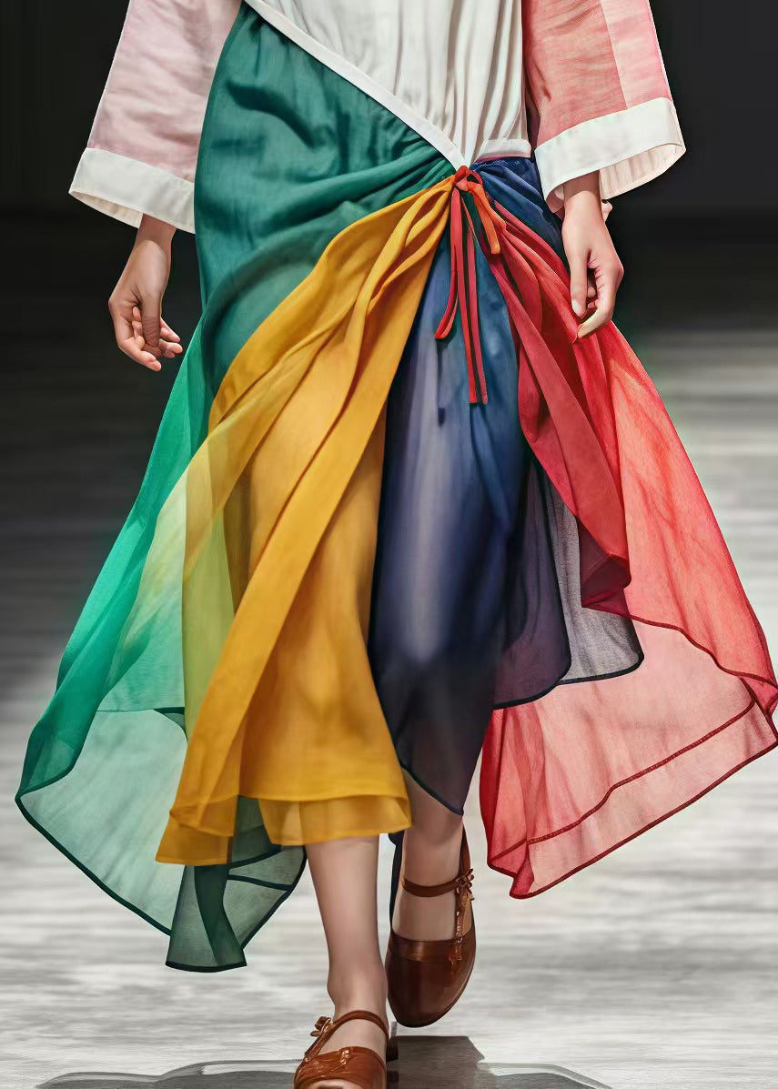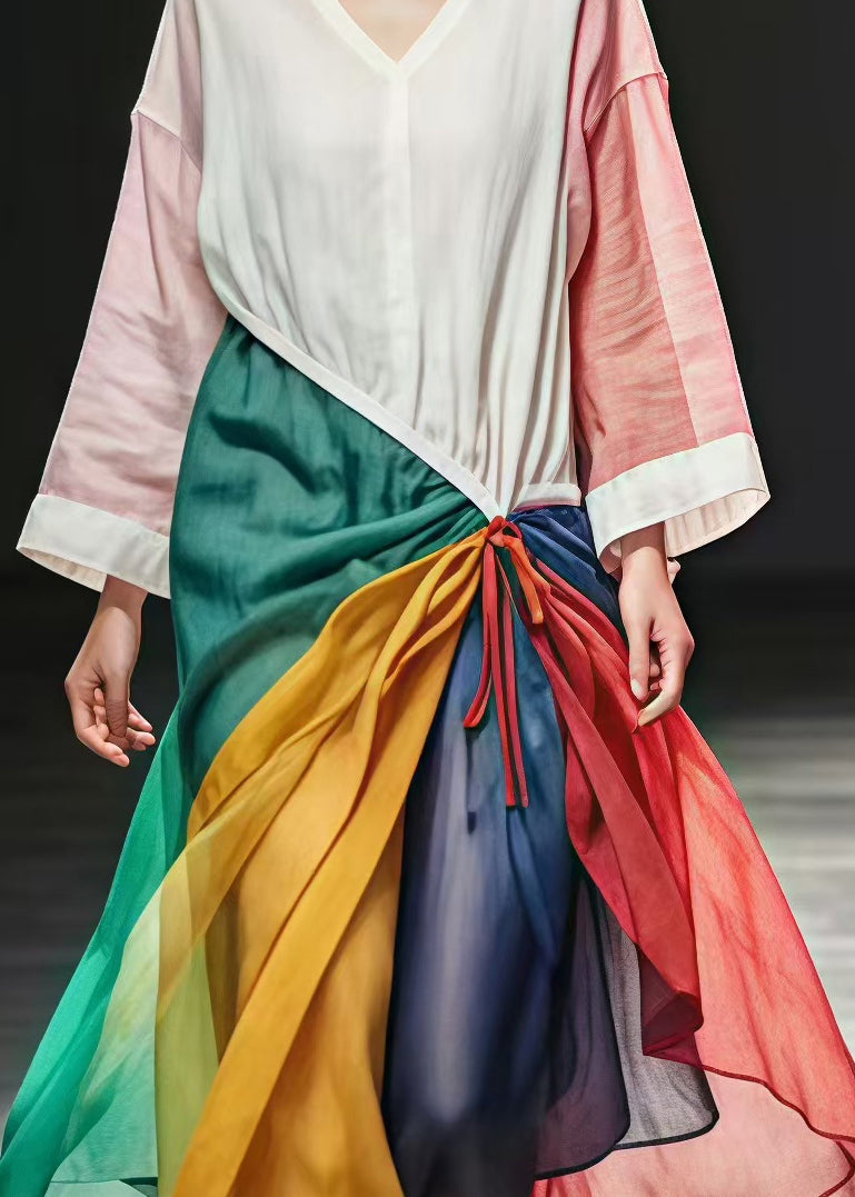 French White Asymmetrical Patchwork Cotton Fake Two Piece Dress Spring