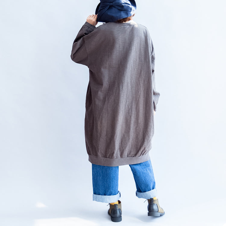 Gray rose print cotton spring dresses zippered hem details oversize dress