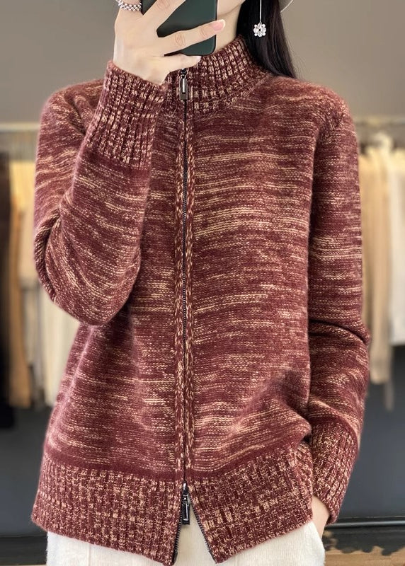 Handmade Black Stand Collar Zippered Knit Cardigans Long Sleeve