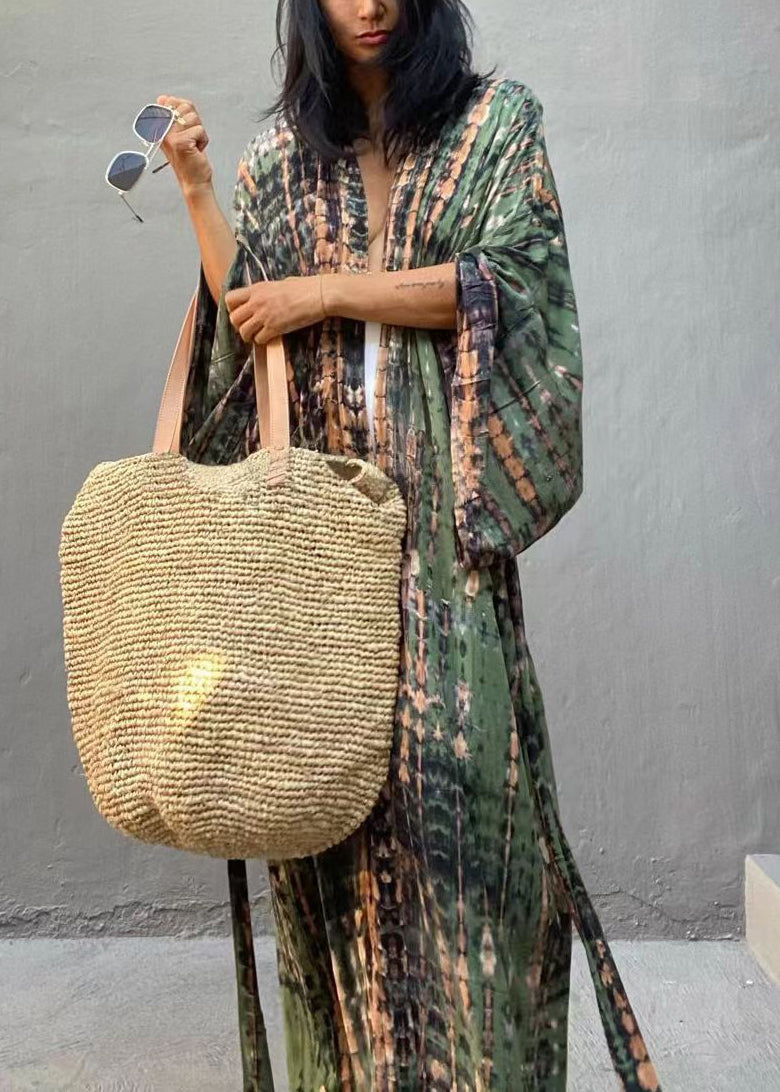 Handmade Green V Neck Striped Holiday Long Smock Spring