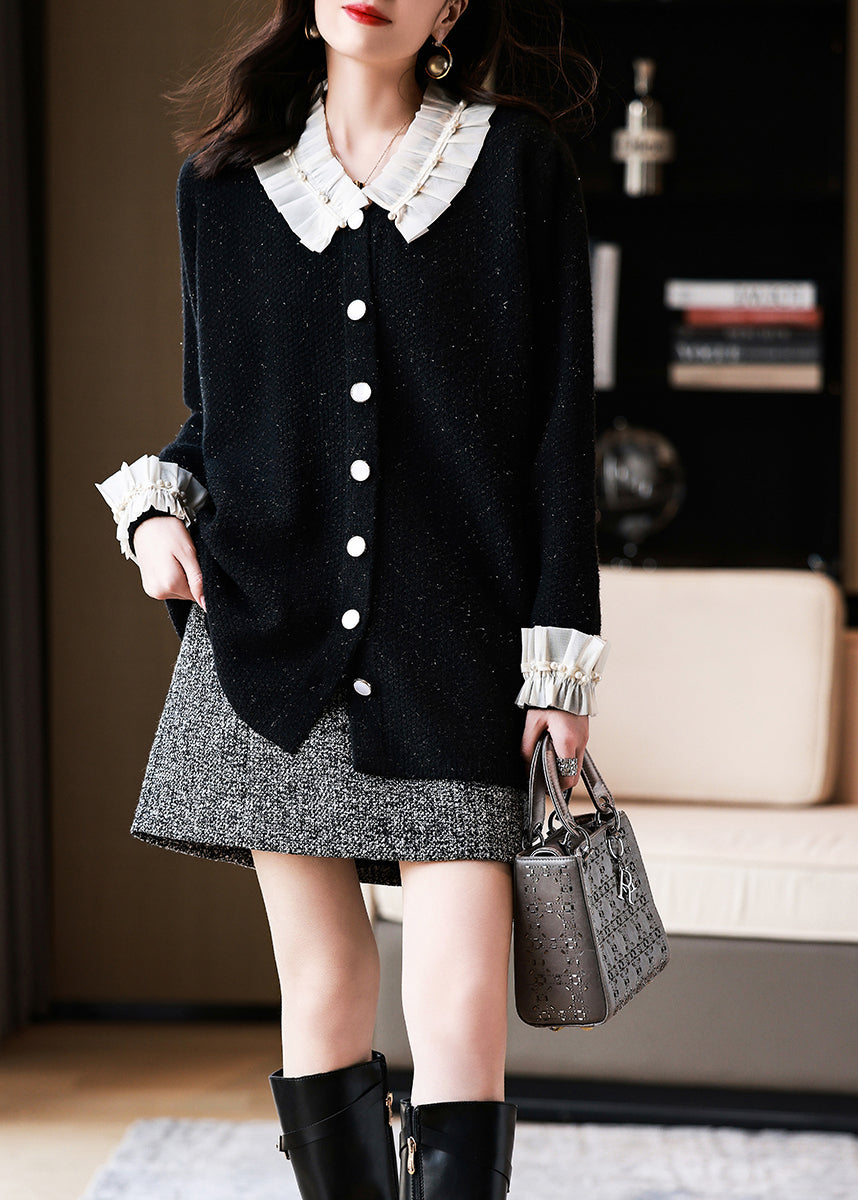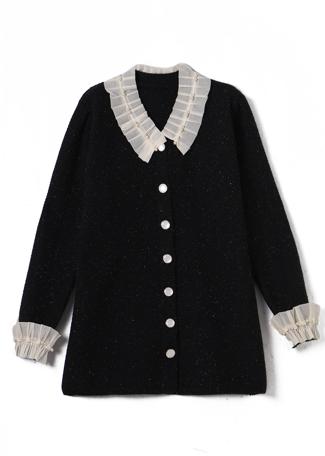 Italian Red Ruffled Nail Bead Patchwork Knitted Sweaters Fall