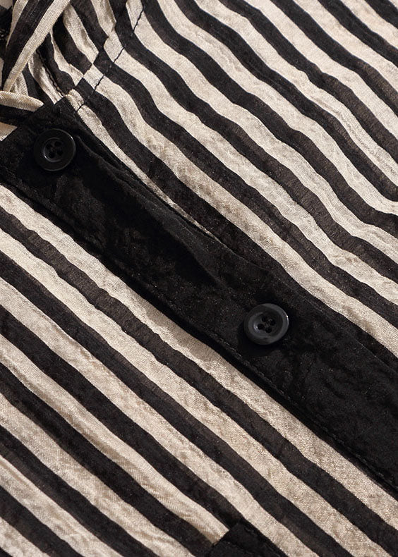 Italian Striped Hooded Pockets Patchwork Chiffon Shirt Tops Summer