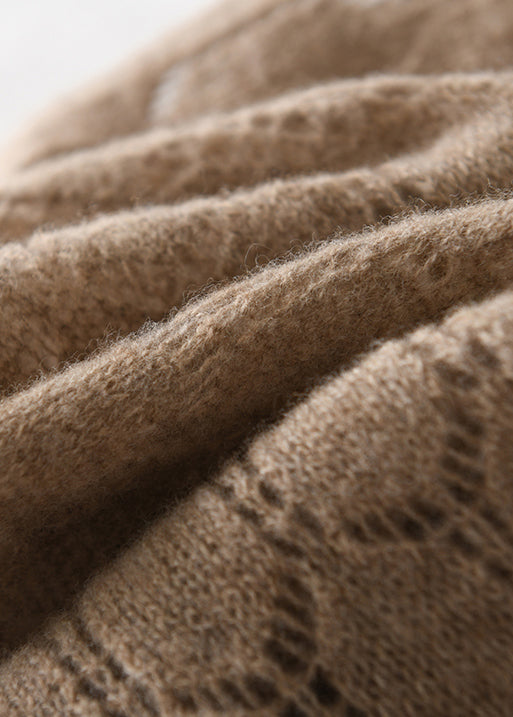 Loose Camel V Neck Button Patchwork Dual Use Cape Fall