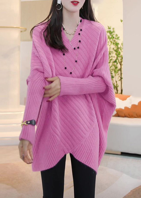 Loose Light Khaki V Neck Cozy Knit Sweater Batwing Sleeve