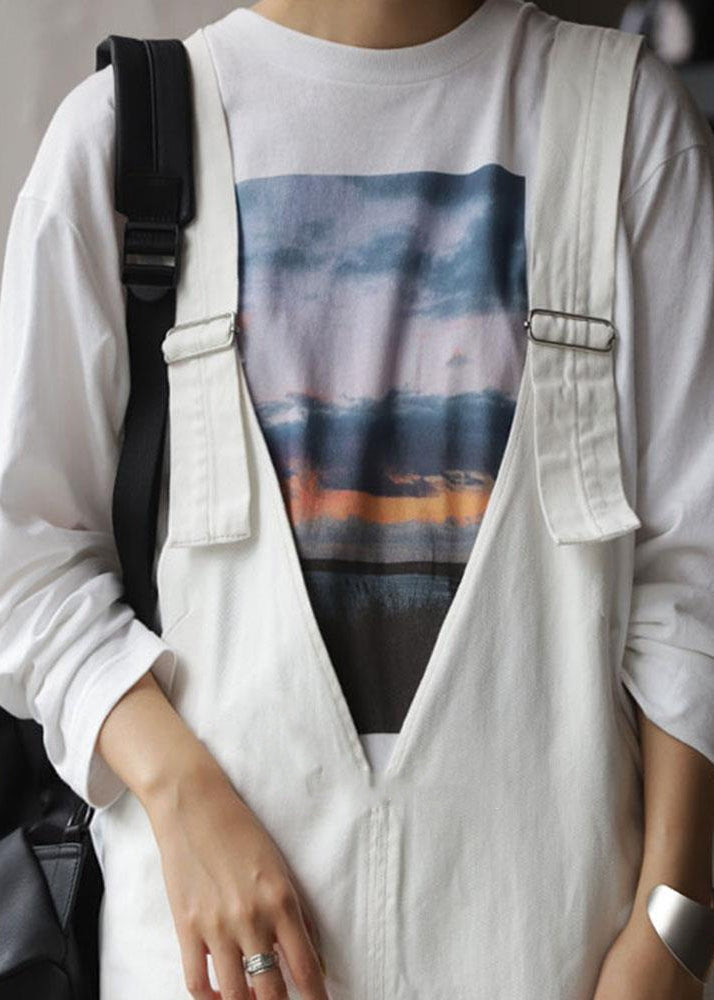 Loose White Pockets Side Open Cotton Cami Dress Summer