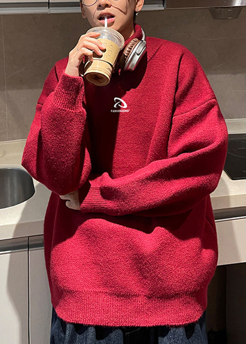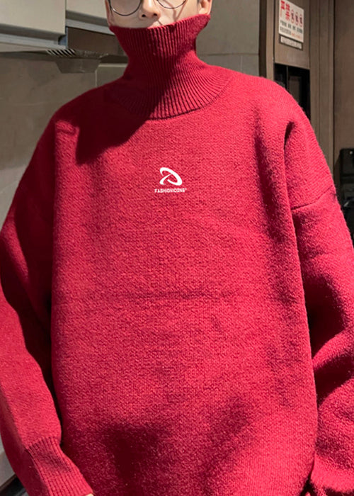 Loose White Turtleneck Solid Thick Knit Mens Sweaters Winter
