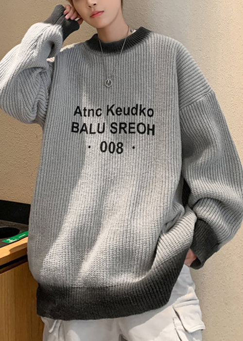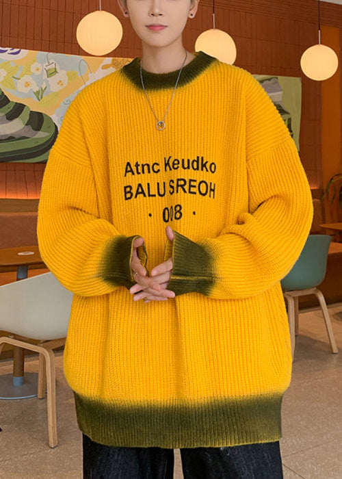 Loose Yellow Tie Dye Letter Knit Men Sweaters Winter