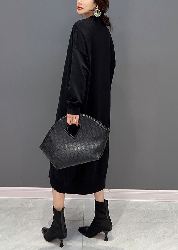 Modern Black O Neck Patchwork Knit Dresses Spring