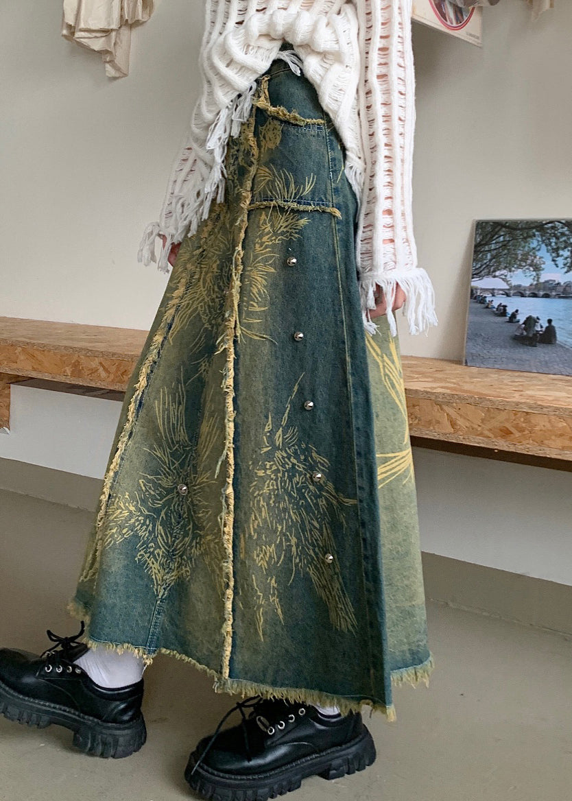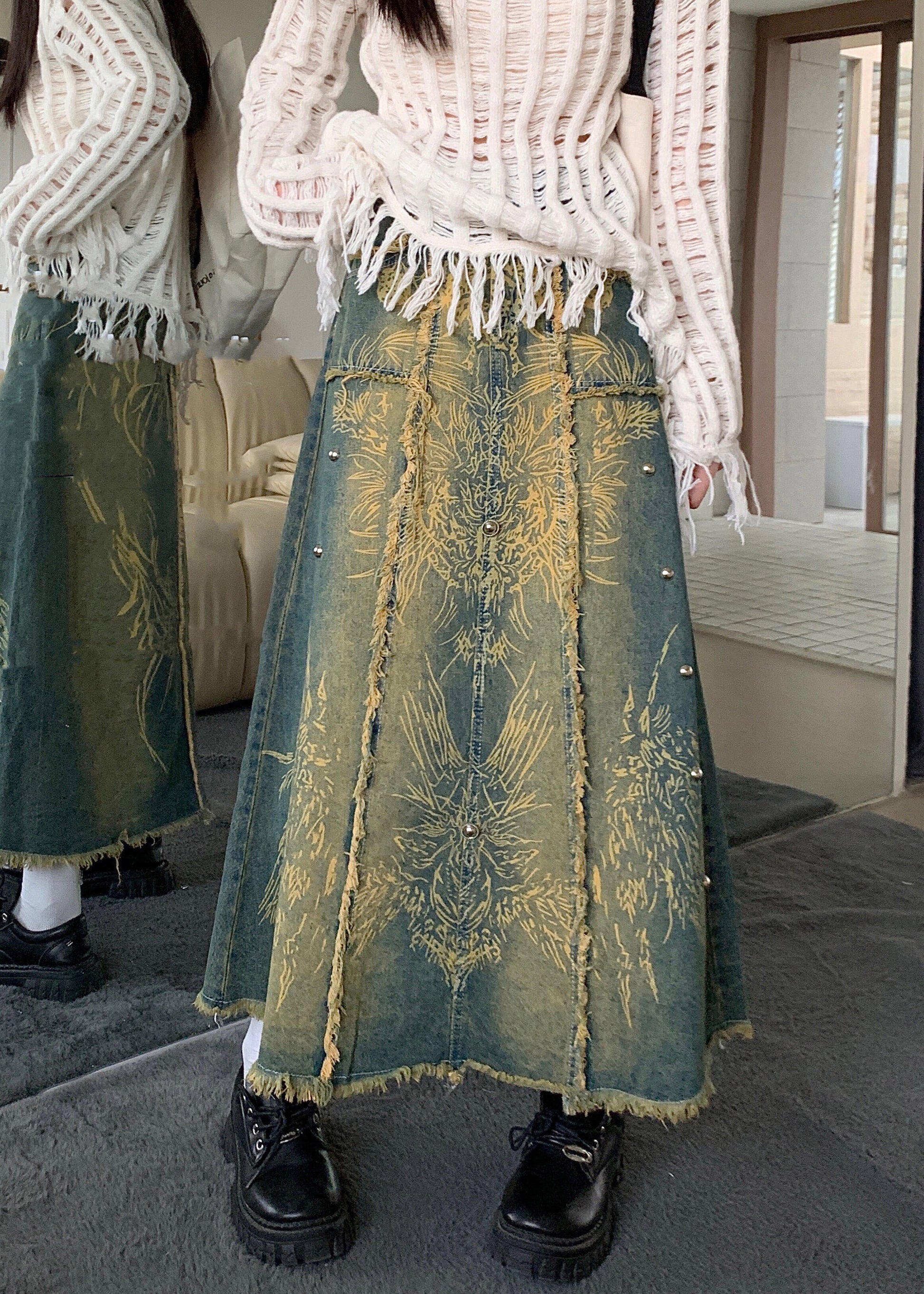 Modern Blue Print Pockets Denim A Line Skirts Fall