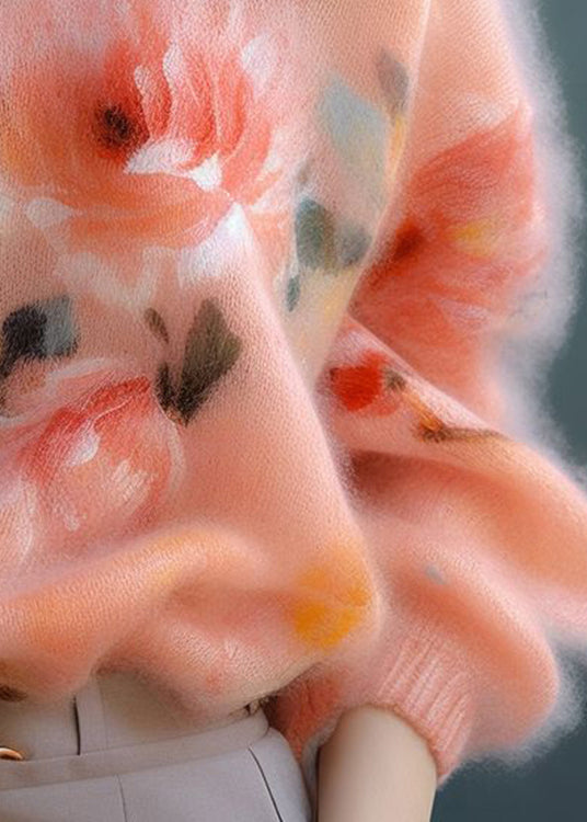 New Pink O Neck Thick Print cotton blend Sweater Spring