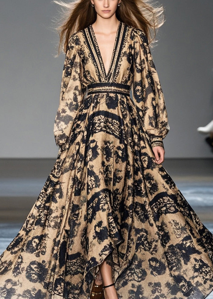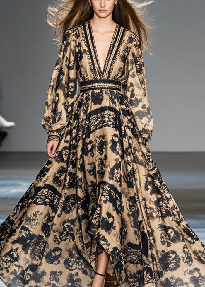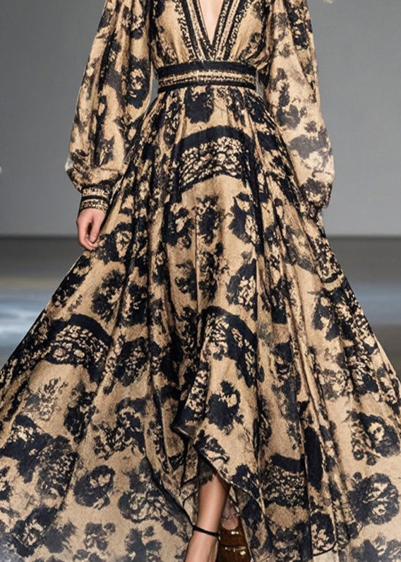 Organic Coffee Print Exra Large Hem Chiffon Cinched Dress Fall