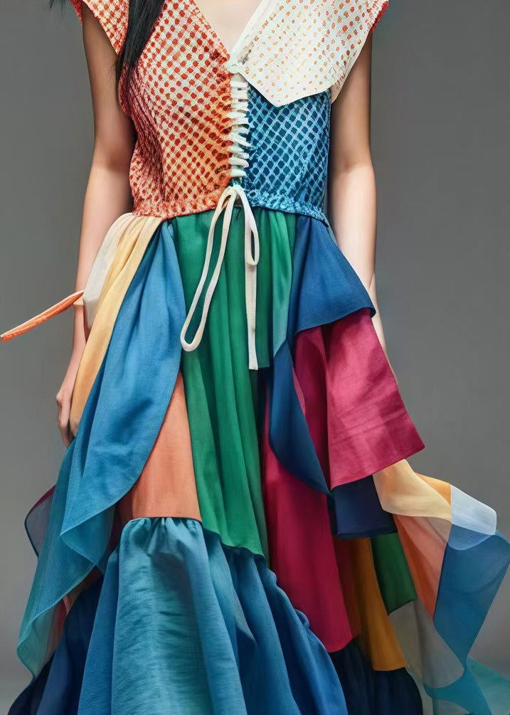 Peacock Blue Patchwork Cotton Dress Exra Large Hem Summer