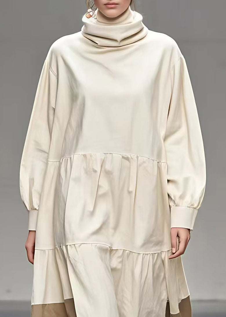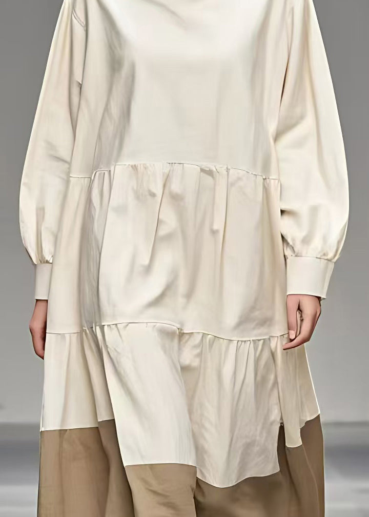 Plus Size Beige Peter Pan Collar Patchwork Maxi Dress Fall