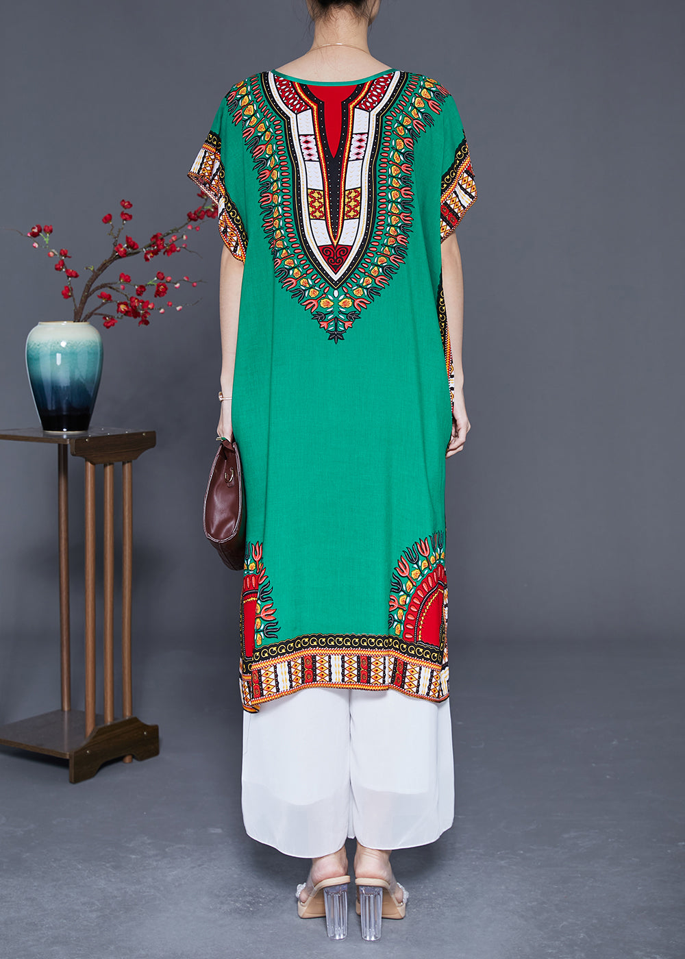 Plus Size Green Oversized Print Cotton Maxi Dresses Summer