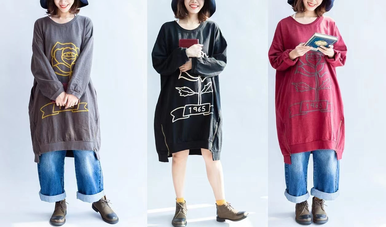red rose floral spring dresses cotton shift dress pullover zippered hem